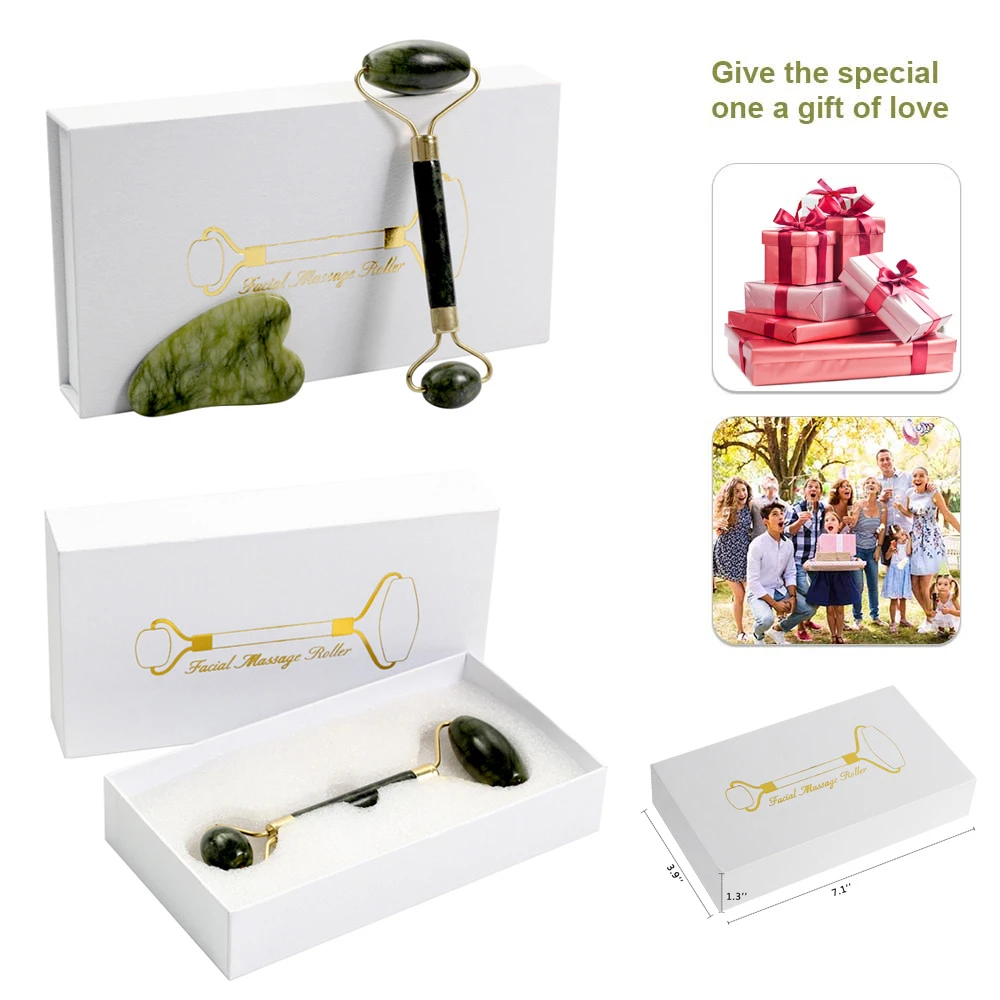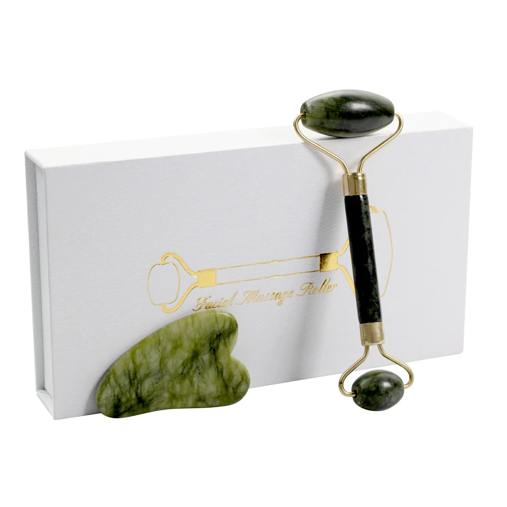 Нефритовый массажный ролик для лица, натуральный массажер для лица, глаз, шеи, скребок гуаша для тонкого подтяжки, инструменты для красоты в упаковке, подарок