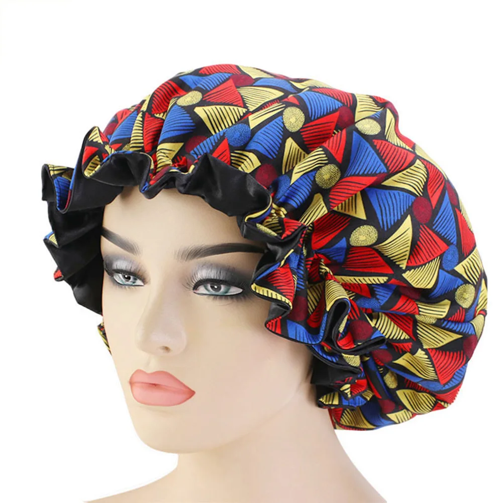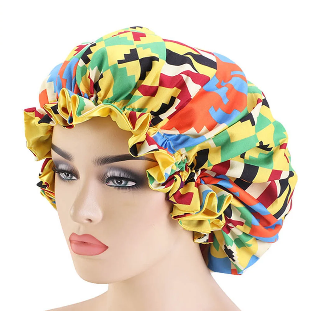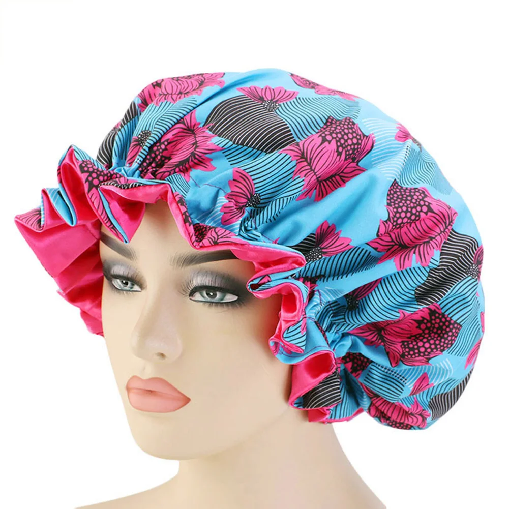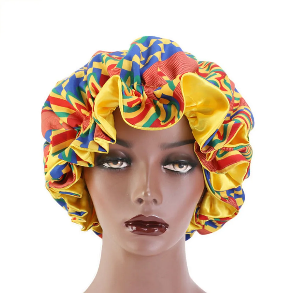 Женская атласная Ночнушка с цветочным принтом в африканском стиле, Женская Большая головная повязка, женская головная повязка, шапка для ухода за волосами