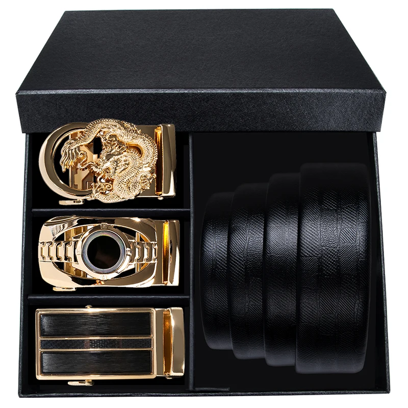 Hi-Tie, роскошный брендовый ремень и коробка для мужчин, подарок, ремень из натуральной коровьей кожи и 3 пряжки, деловой мужской золотой дизайн, роскошный пояс в коробке
