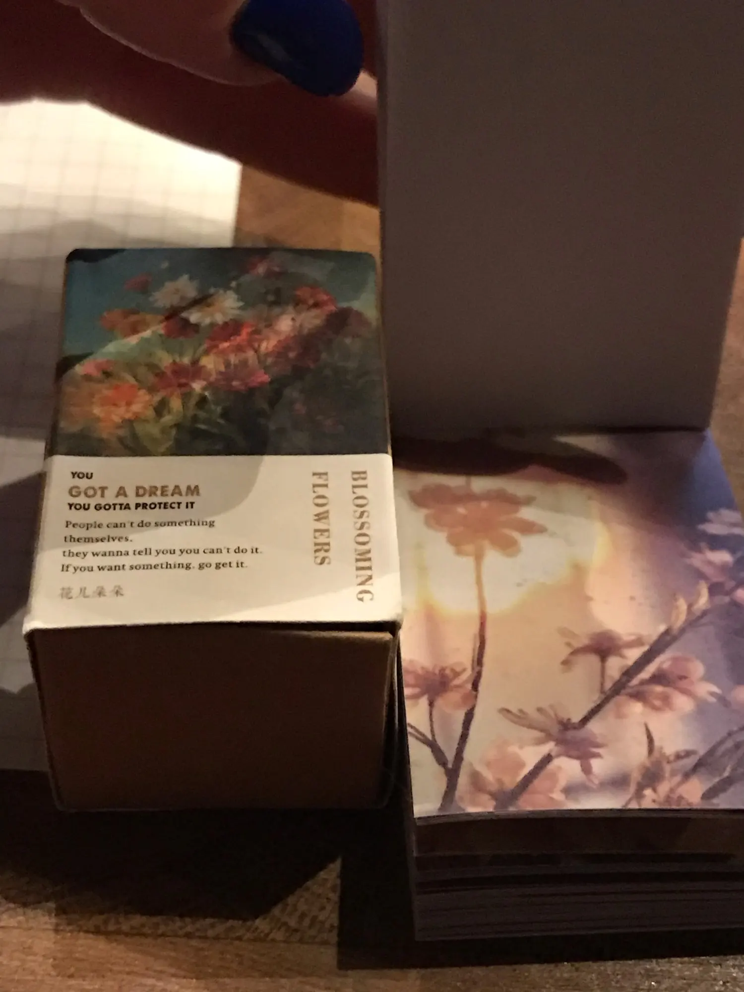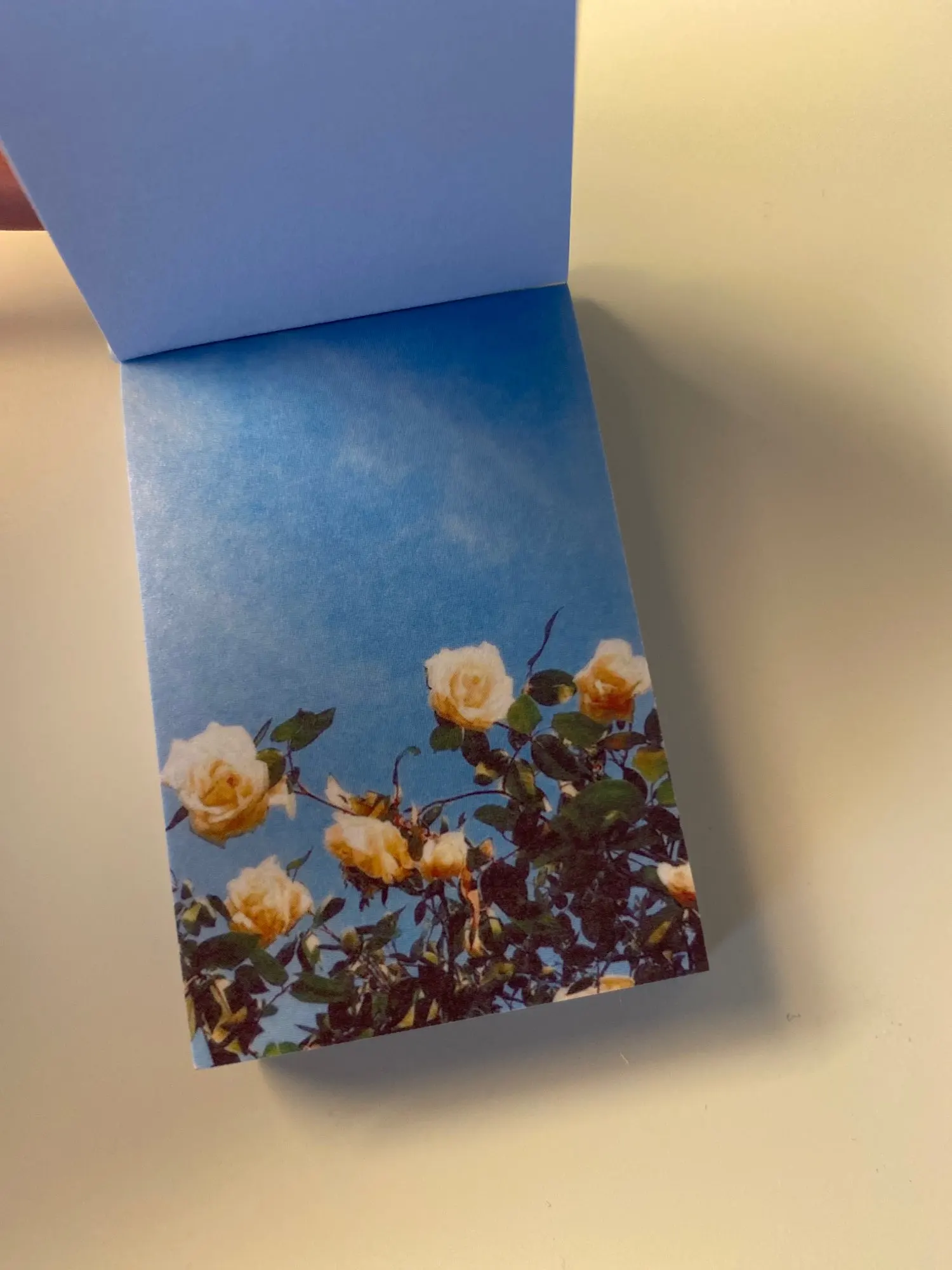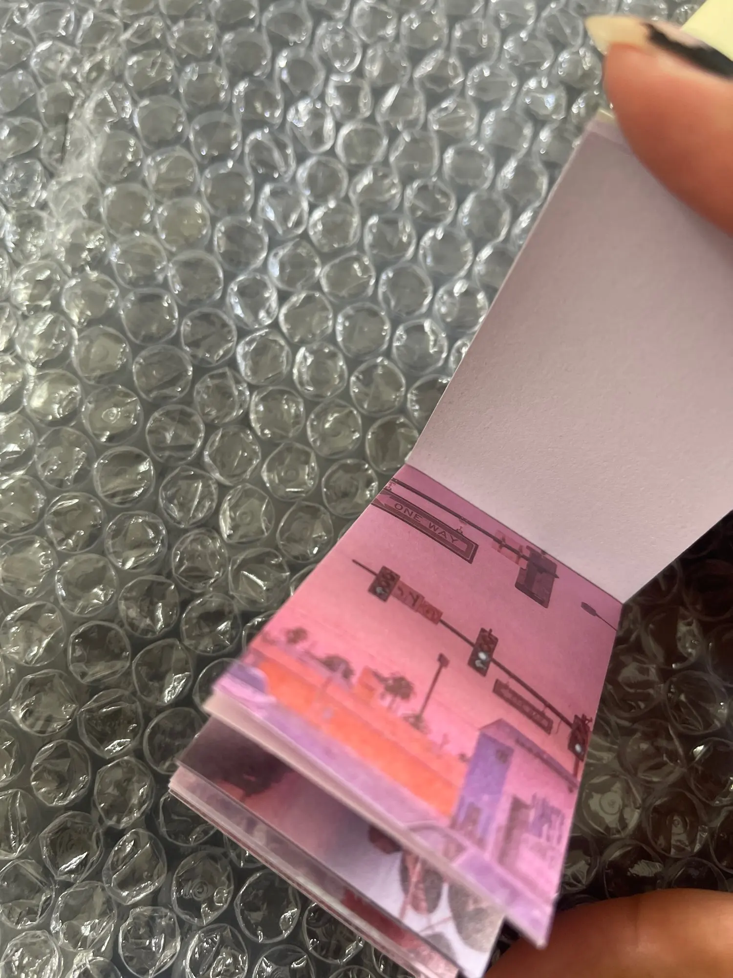 Очень миниатюрный блокнотик с фото в одной цветовой гамме. Качество печати на на мой взгляд хромает, некоторые картинки слегка расплываются. Каждый листик представляет собой фото на тонкой бумаге с липким слоем, основу поддеть довольно трудно, уголок сминается сильно, как клеется к бумаге ещё не проверяла. Но вообще товар понравился) Дошла посылка из двух товаров за срок чуть больше двух недель, но по какой-то неизвестной ошибке посылка пролежала на Почте России ещё столько же, пока я сама за ней не пришла. В целом покупкой довольна, рекомендую и товар, и продавца, который заказ отправил на следующий же день после оплаты)))