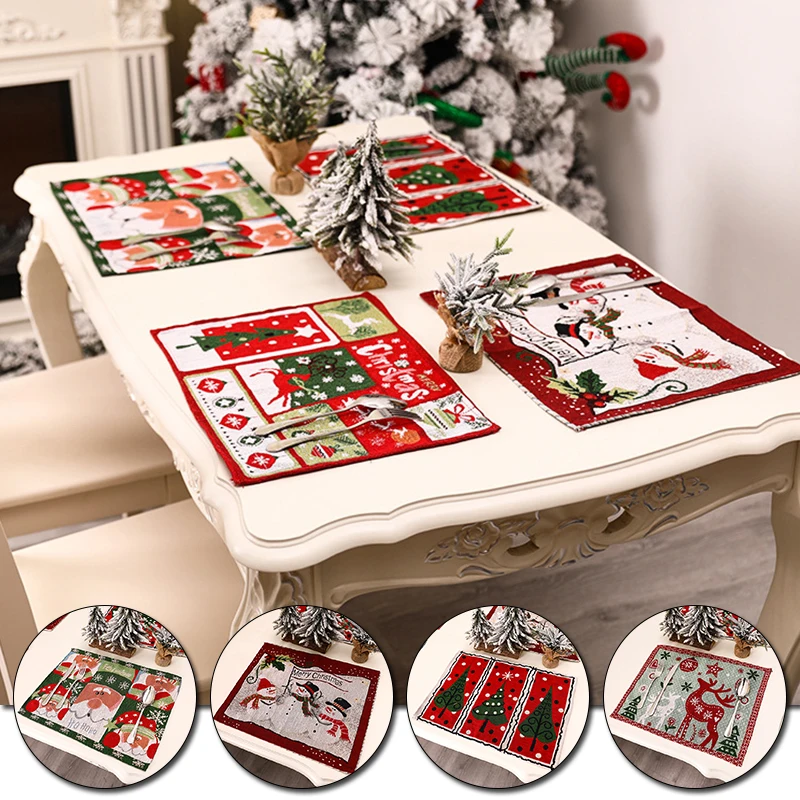 Рождественское украшение для дома, Рождественская салфетка под приборы г., Рождественский Декор для стола, скатерть с Санта-Клаусом, рождественские подарки