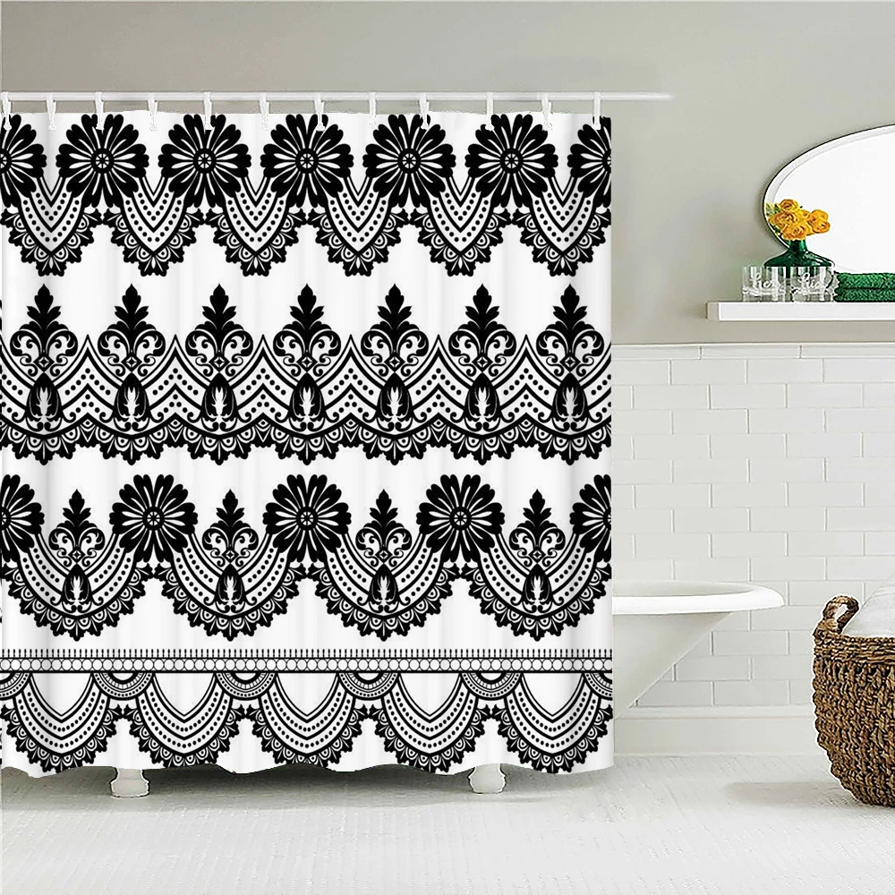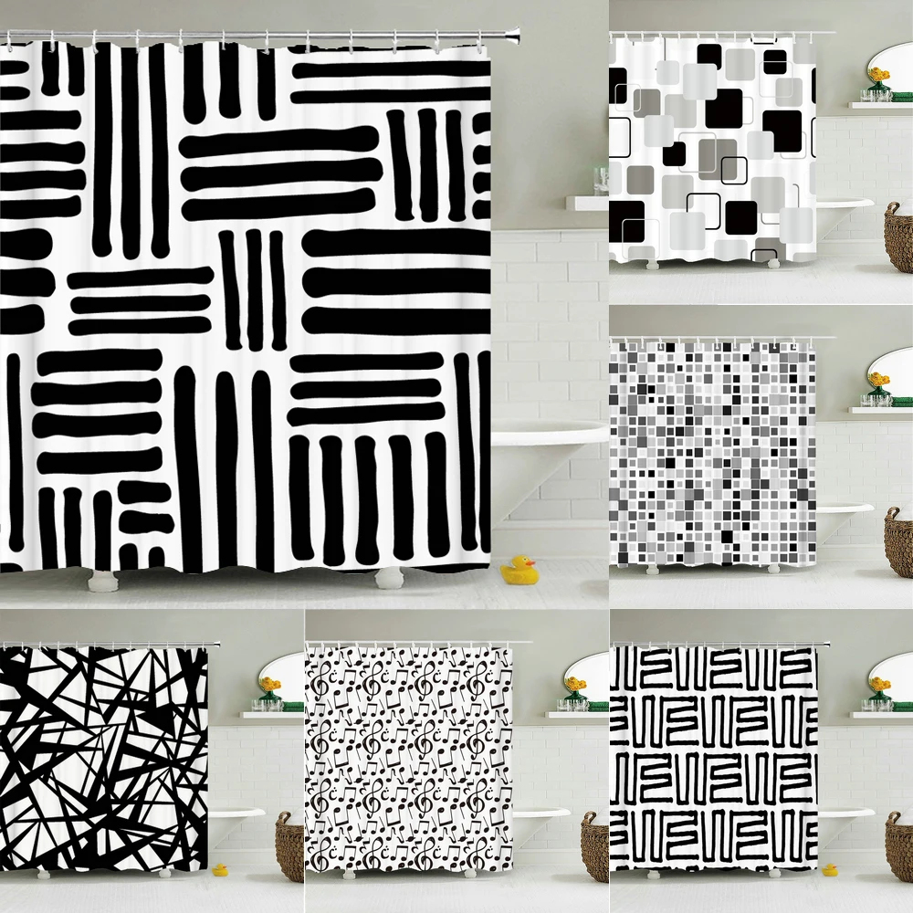 Черно-белая Геометрическая занавеска для душа, водонепроницаемая занавеска для ванной комнаты, 3d полиэстер, Современная занавеска с крючками, большой размер, экран для ванной