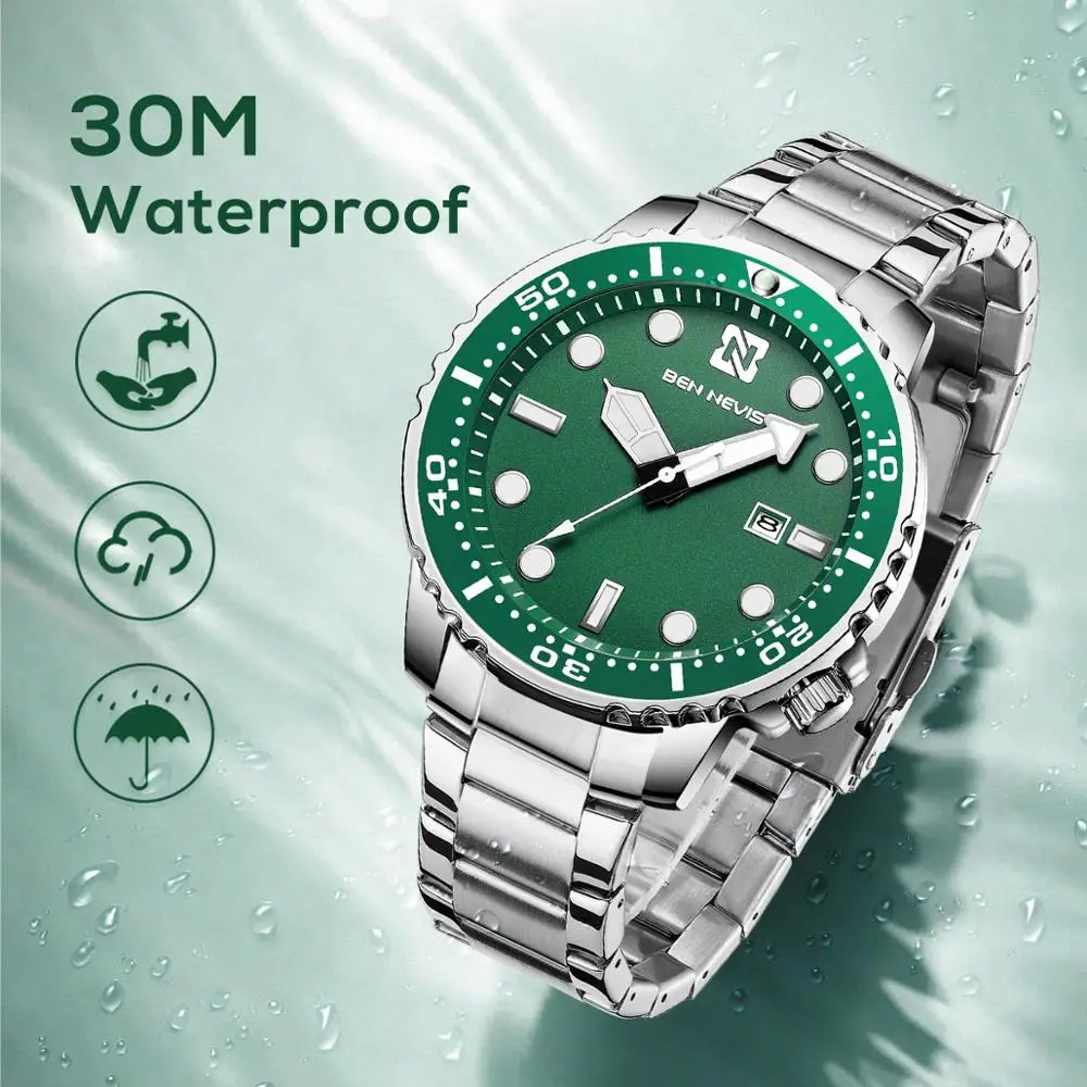 Бен Невис Брендовые Часы кварцевые часы на запястье Дата Календарь Нержавеющаясталь ремешок часы Водонепроницаемый мужские военные спортивные часы relogios masculino