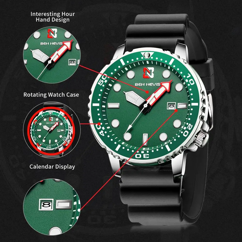 Горячая Распродажа мужские кварцевые часы BEN NEVIS маленькие зелен...