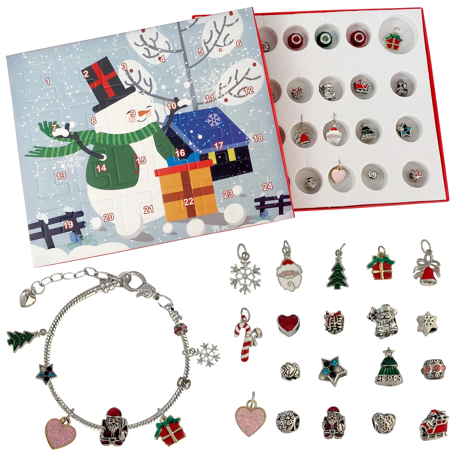 Рождественский Адвент-календарь, календарь обратного отсчета с модным браслетом, 24 дня, Набор подвесок для детей (многоцветный)