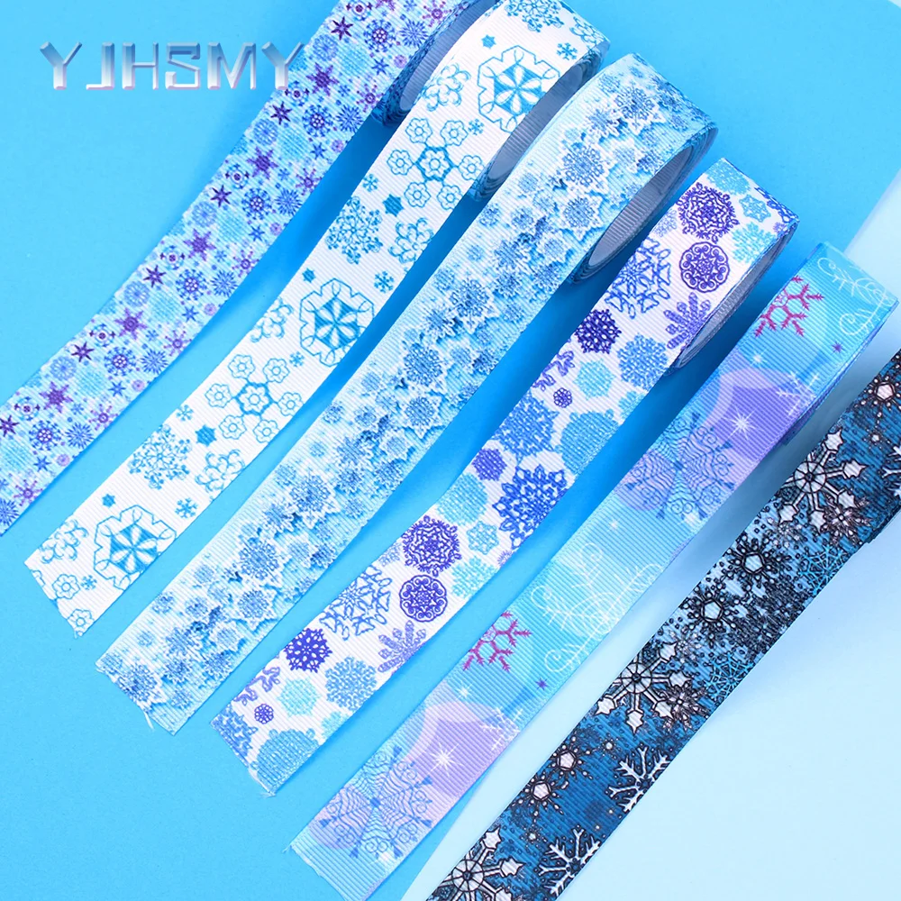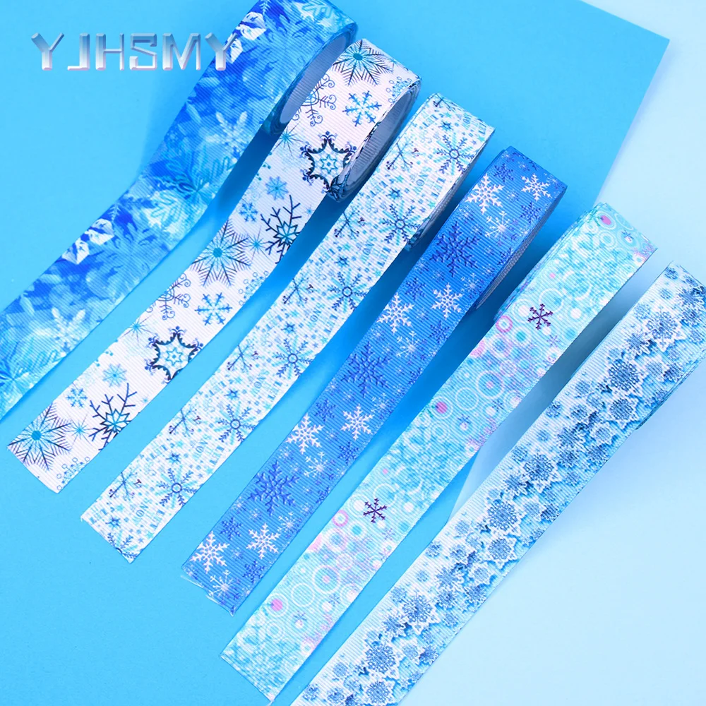 1 дюйм, 5 ярдов, Рождественская синяя корсажная лента в виде снежинки, детский бант ручной работы, свадебное украшение, подарочные упаковочные материалы