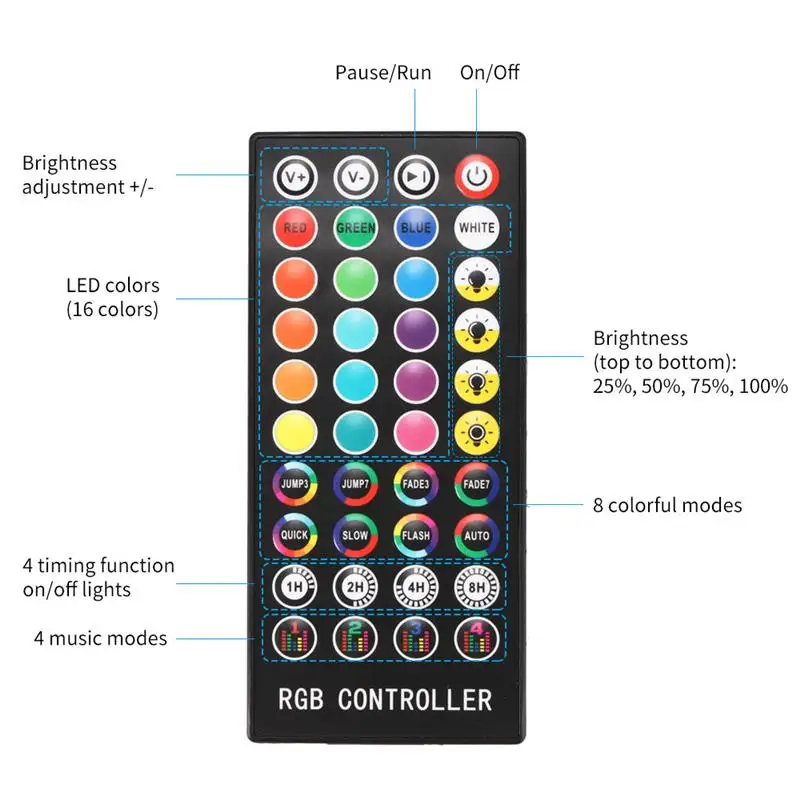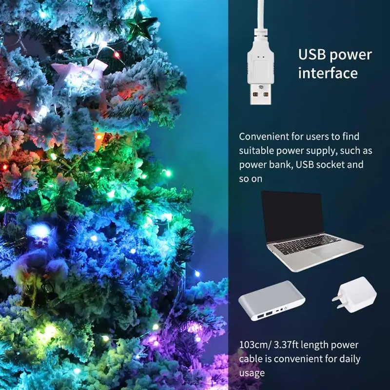 Управление WIFI и Bluetooth Сказочный светильник разработан с помощью кнопочного переключателя, который может быть подключен к интеллектуальному приложению для телефона Tuya или Smartlife по технологии Wi-Fi и Bluetooth 5,0. Двойные способы обеспечивают стабильное подключение. Со встроенным микрофоном, светильник поддерживает alexa и google голосовой помощник, удобно управлять светильник на дальнем расстоянии, которые могут изменить его светильник цвет в соответствии с музыкой как wellz (четыре музыка светильник режимы). Инфракрасный пульт дистанционного управления и регулируемый светильник Прикрепленный с пультом дистанционного управления, светильник удобно управляется контроллером. Есть 16 светильник цвета и 12 виды светильник режимов для вас на выбор, 6 уровней яркости может быть предоставлена, четыре таймер режимов (1 h, 2 h, 4 h, 8н) для удовлетворения ваших потребностей в использовании. Usb-интерфейс питания Сказочный светильник разработан с интерфейсом USB, удобным для пользователей, чтобы найти подходящий источник питания, такой как внешний аккумулятор, разъем USB и так далее. Кабель питания длиной 103 см/3,37 фута удобен для ежедневного использования. Дизайн металлической проволоки Сказочный светильник можно свободно менять форму, чтобы обеспечить лучший сервис фиксации, практичный и удобный. Светильник большого размера с бусинами на металлической проволоке дает отличный эффект на светильник. Область применения Сказочный светильник строка широко подходит для вечерние, для спальни, для дома, сад, патио, балкон, стены, окна и так далее. Примечание: В светильник строка может не может быть свободно обрезается в размерную сетку США самостоятельно. Спецификация: Тип: Сказочный светильник Материал: пластик + металл + электрический компонент Цветной светильник: RGB Количество бусин: 5 м-50 шт., 10 м-100 шт. Аккумулятор: кнопочный аккумулятор (входит в комплект) Длина кабеля питания: 103 см Входное напряжение: 5 В WI-FI: 802.11b/g/n, 2,4 ГГц Bluetooth: 5,0 Частота Bluetooth: 2,4 ГГц Чувствительность RX: -92 дБм Микрофон: Встроенный Ручная кнопка управления: Поддержка Приложение для телефона: Tuya, Smartlife Шифрование: WEP, TKIP, AES Сила тока: 5 м-1 А, 10 м-2 А Светильник боксеров Длина: 5 м/1,97 дюйма, 10 м/3,93 дюймов Посылка: 1 * светильник феи 1 * USB кабель питания 1 * пульт дистанционного управления 1 * коробка для посылка