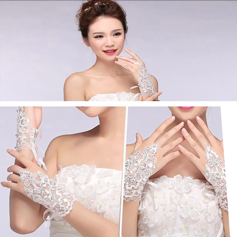 Элегантная белая кружевная перчатка, отделанная бисером крючком кружевная перчатка одежда аксессуары блесток аппликация перчатки невесты перчатки без пальцев, Новинка