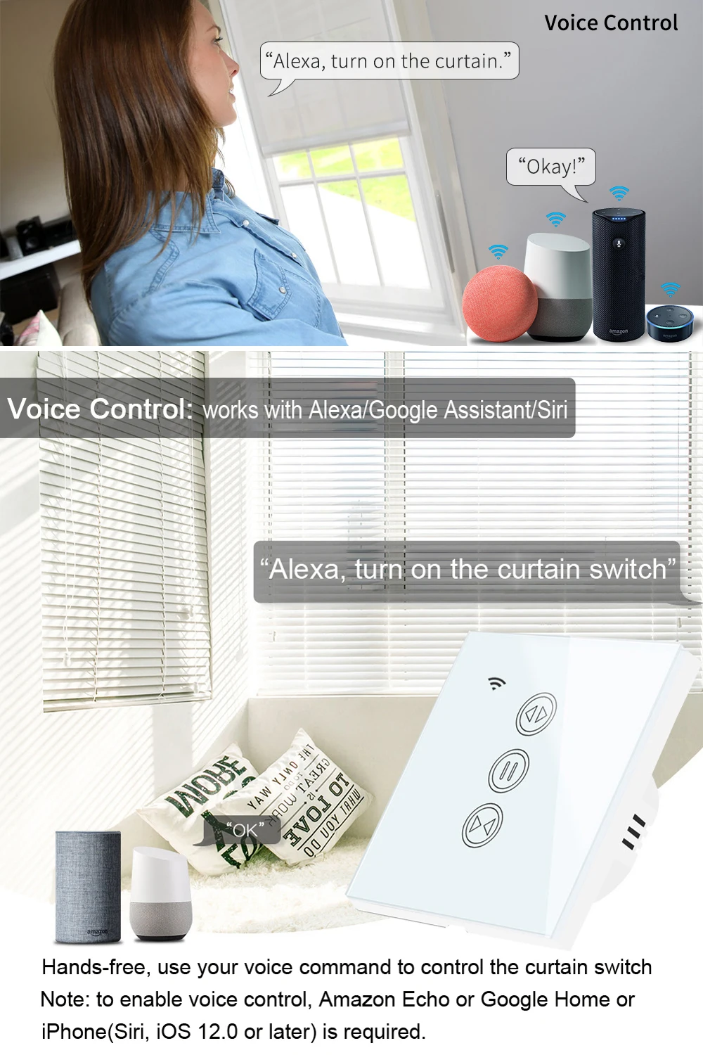 -Совместимость с Alexa, Google Home, Siri(iOS 12,0 или более поздней версии) -С голосовым управлением, чтобы включить и выключить шторы.