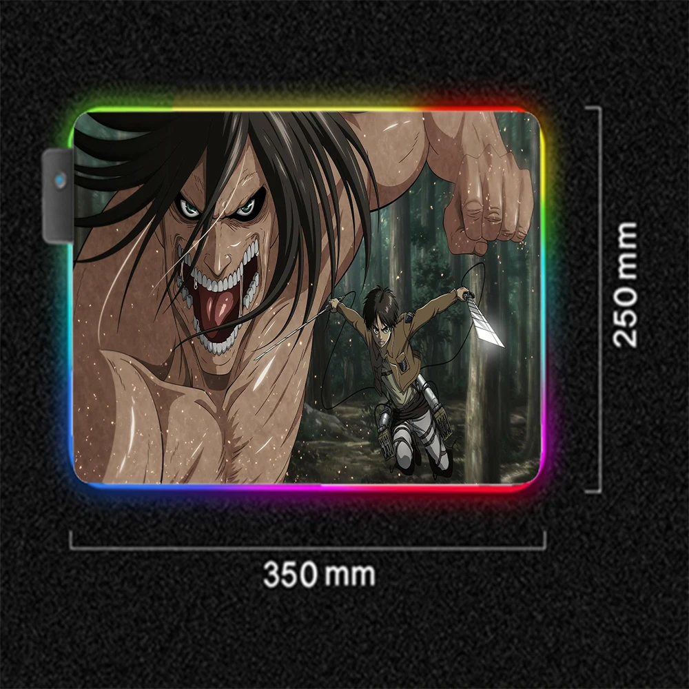 Коврик для мыши с аниме атаки гигантский Эллен Титан RGB большие игровые аксессуары для ноутбука мышь XXL подсветка светодиодный коврик для мыши Коврик для клавиатуры Настольный коврик