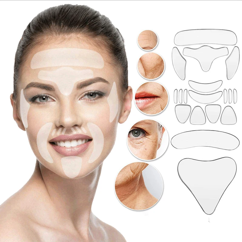 Для женщин многоразовые силиконовые анти-морщинки уход за кожей лица ленты подтяжка лица-ап Невидимый колодки комплект дряблость кожи инструменты для ухода за глазами и борьбы с морщинами накладки для удаления для глаз лоб для щек, подбородок, Шея уход за кожей лица наклейки