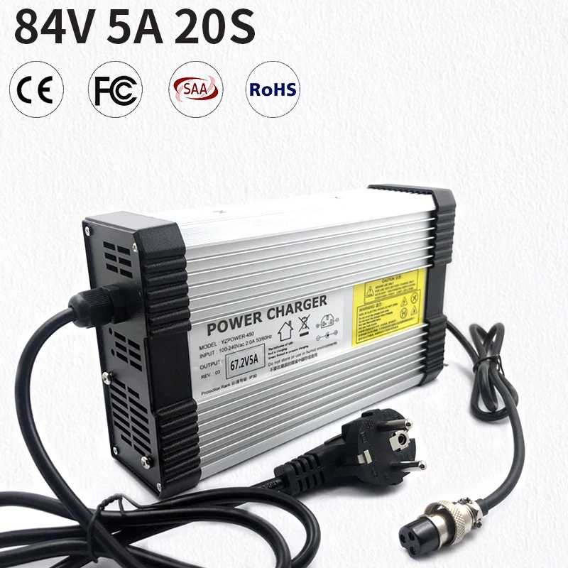 Автомобильное зарядное устройство для литиевых аккумуляторов 20S, 72 в, 5a, 4A, выход 84 в, 5a, 4A, быстрое зарядное устройство для электроскутера, электровелосипеда, мотоцикла