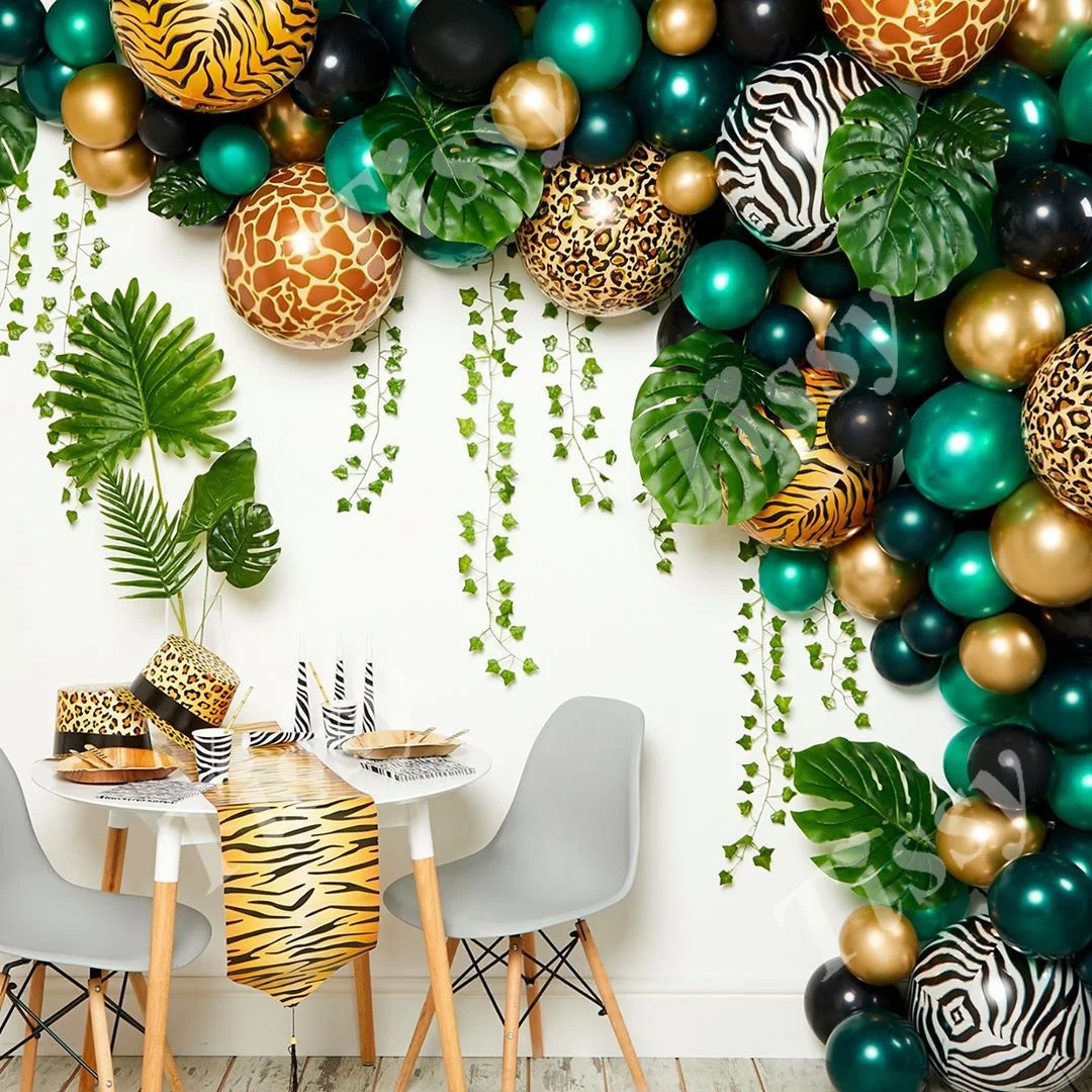 1 Набор леопардовых искусственных листьев для диких джунглей, сафари, украшение для вечеринки с животными, детский праздник на день рождения, товары для вечеринки