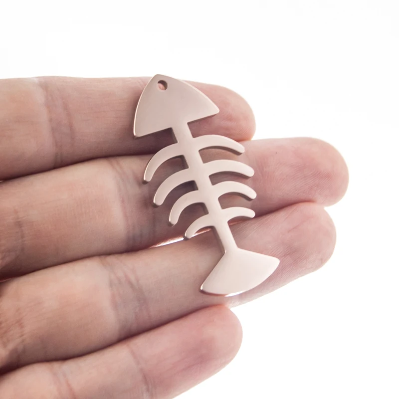 Шарм в виде рыбьей кости, подвеска цвета розового золота для женщин, ожерелье, самостоятельное изготовление, нержавеющая сталь, зеркальная полировка, хорошее качество
