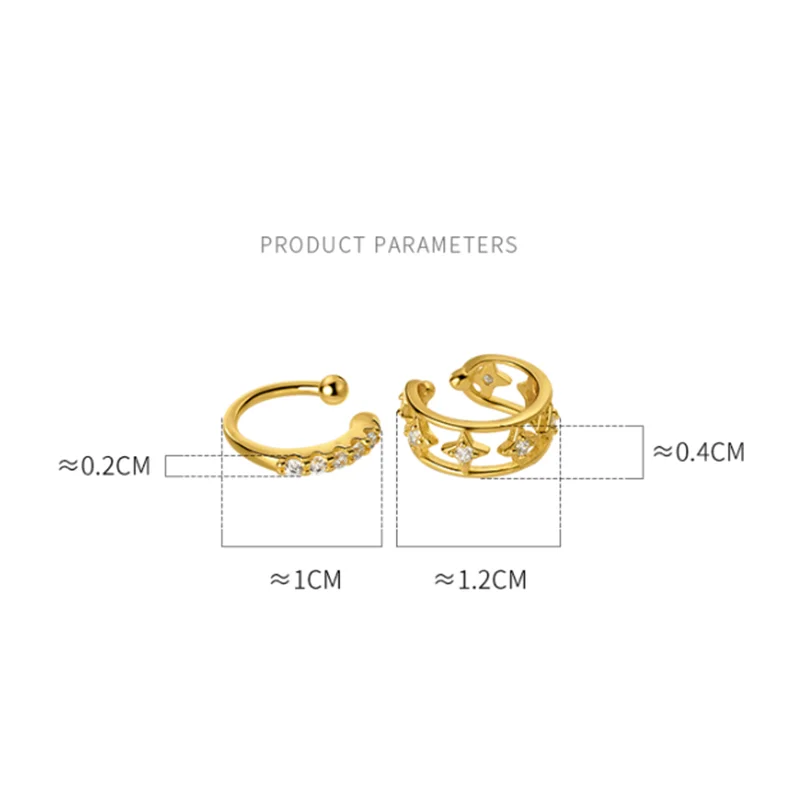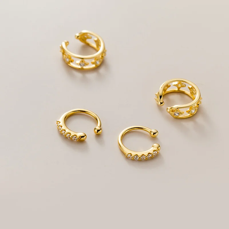 WOOZU реальные 925 Стерлинговое Серебро Циркон Кафф для женщин Очаровательная с украшением в виде кристаллов серьги-клипсы Золотое Earcuff без пирсинг ювелирные изделия