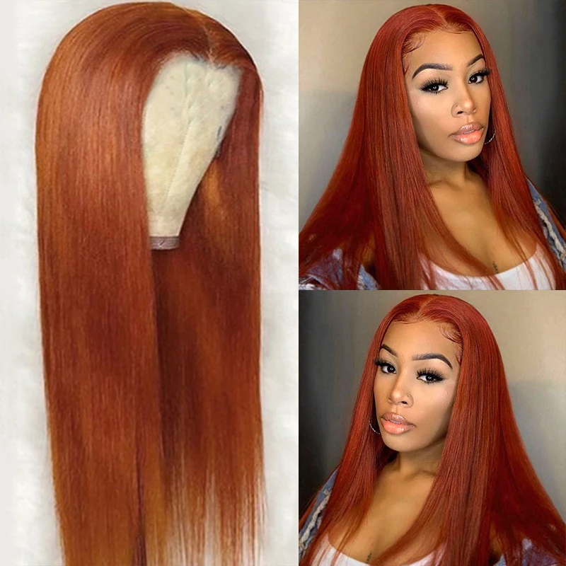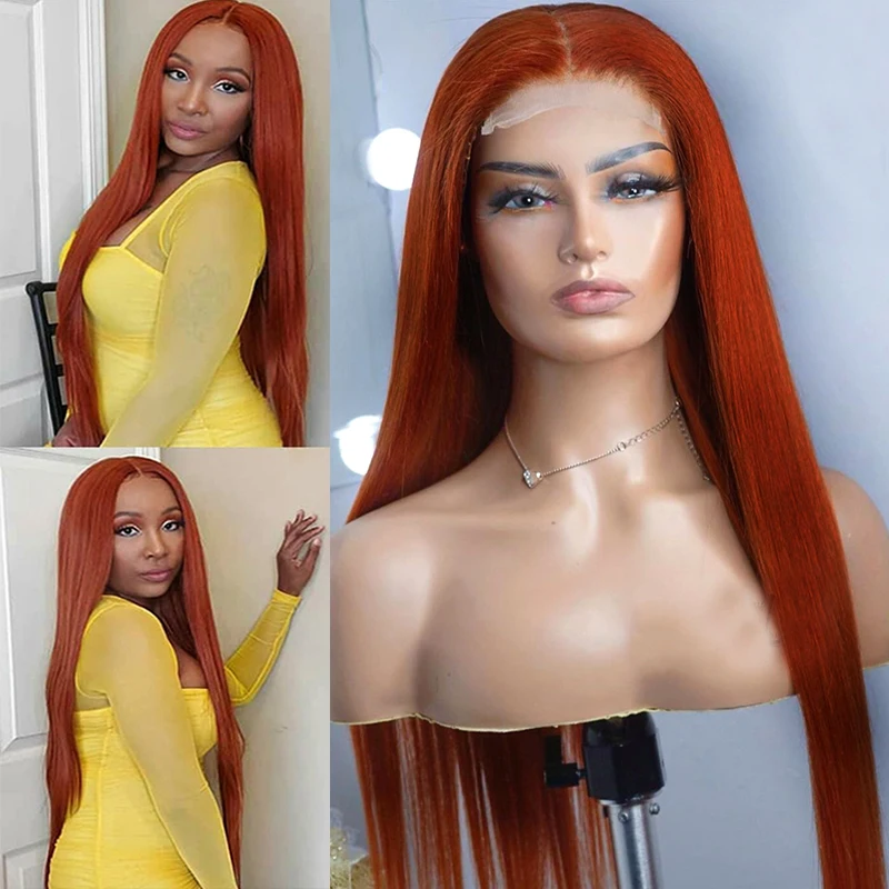 Парик сгоревший оранжевый, парики из человеческих волос T-Part, парики на сетке, прямые передние парики из человеческих волос, парики из человеческих волос имбирного цвета на сетке спереди, 180%