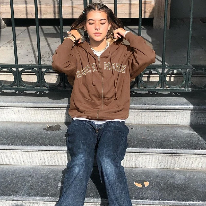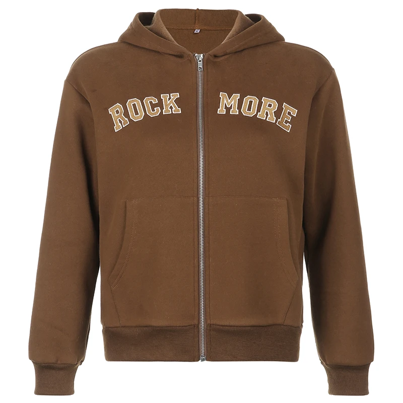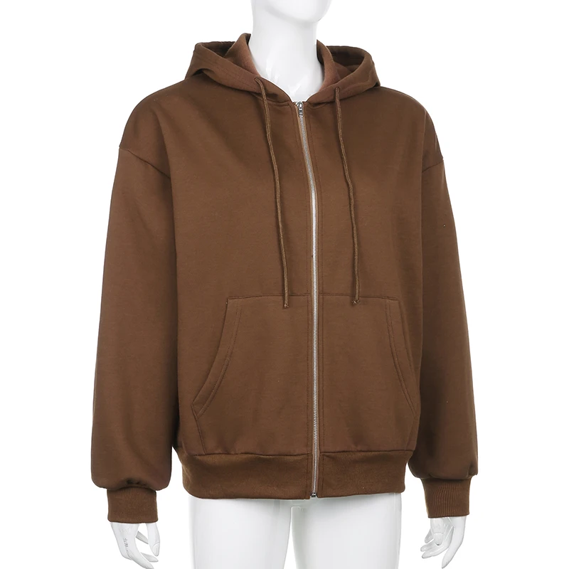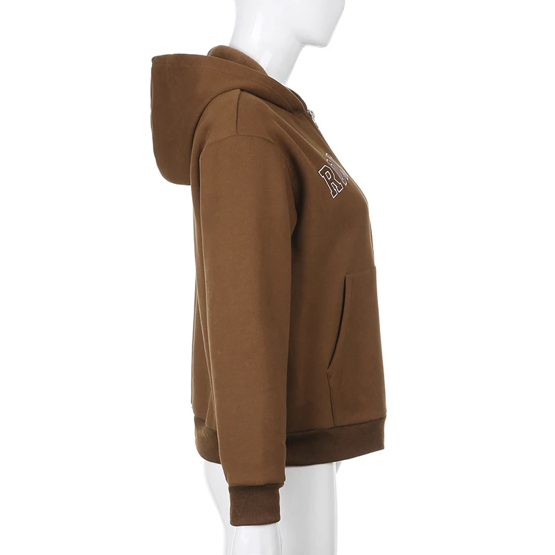 Куртка Rapcopter Женская коричневая в стиле Харадзюку, верхняя одежда с длинным рукавом Y2K, худи на молнии с большими карманами, Флисовая теплая верхняя одежда