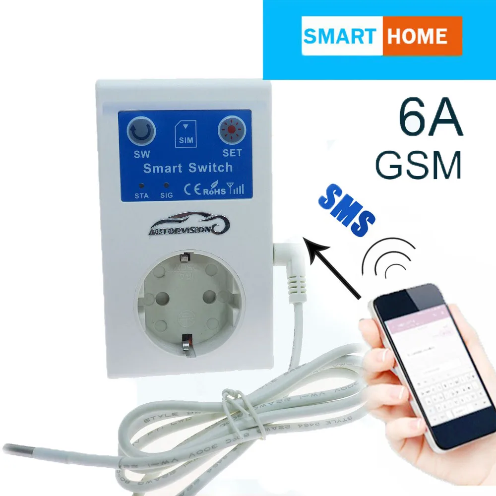 Умная штепсельная розетка GSM с датчиком температуры, управление че...