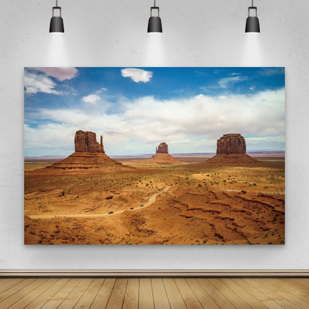 Laeacco святого Иисуса небо облако пустыня Живописный пейзаж желтые пески дорога автомобиль фото фон для фотостудии