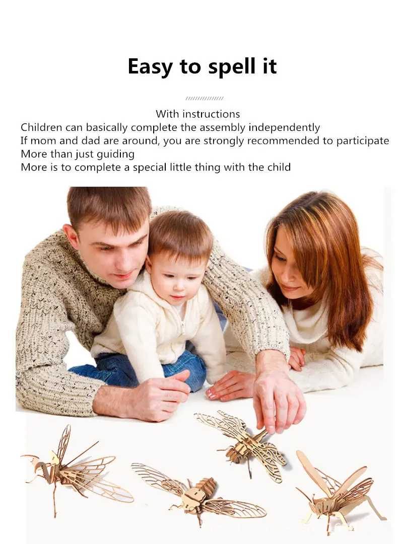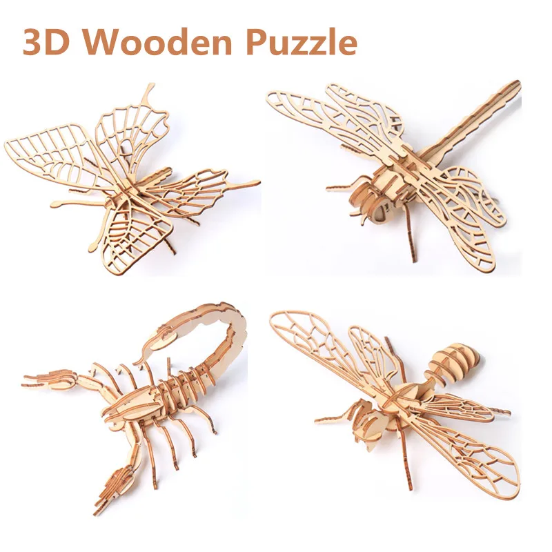 Лазерная резка DIY 3D деревянная доска-головоломка, насекомое Живот...