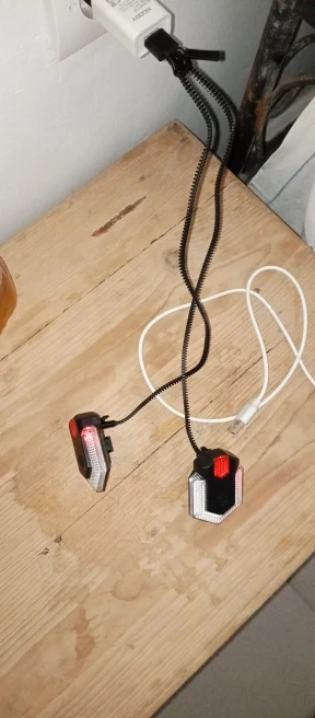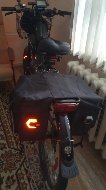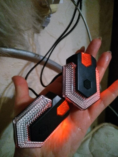 поворотники Огонь!!! заряжается от USB зарядки, в комплекте крутой шнур на два разъема. пульт управления на батарейке таблетке. крепятся резинками, но я на всякий случай зажала еще стяжками. режимы: право, лево, аварийка и маленький красный огонек. брала полную комплектацию, что бы крепить задние не под седло, а на раму. днем видно хорошо. пока очень довольна. доставка в Киев на новую почту меньше чем за месяц.