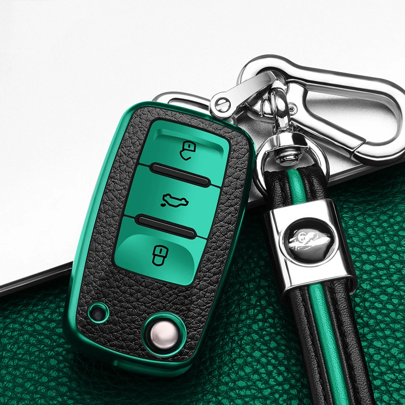 Новый кожаный + ТПУ чехол ключа дистанционного управления автомобилем чехол для Volkswagen VW Bora Polo Tiguan Jetta Passat B5 B6 B7 Golf Beetle для Skoda Octavia