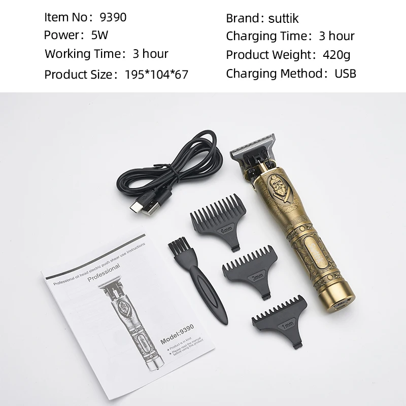 Машинка для стрижки волос T9 аккумуляторная с зарядкой от USB, 0123 мм