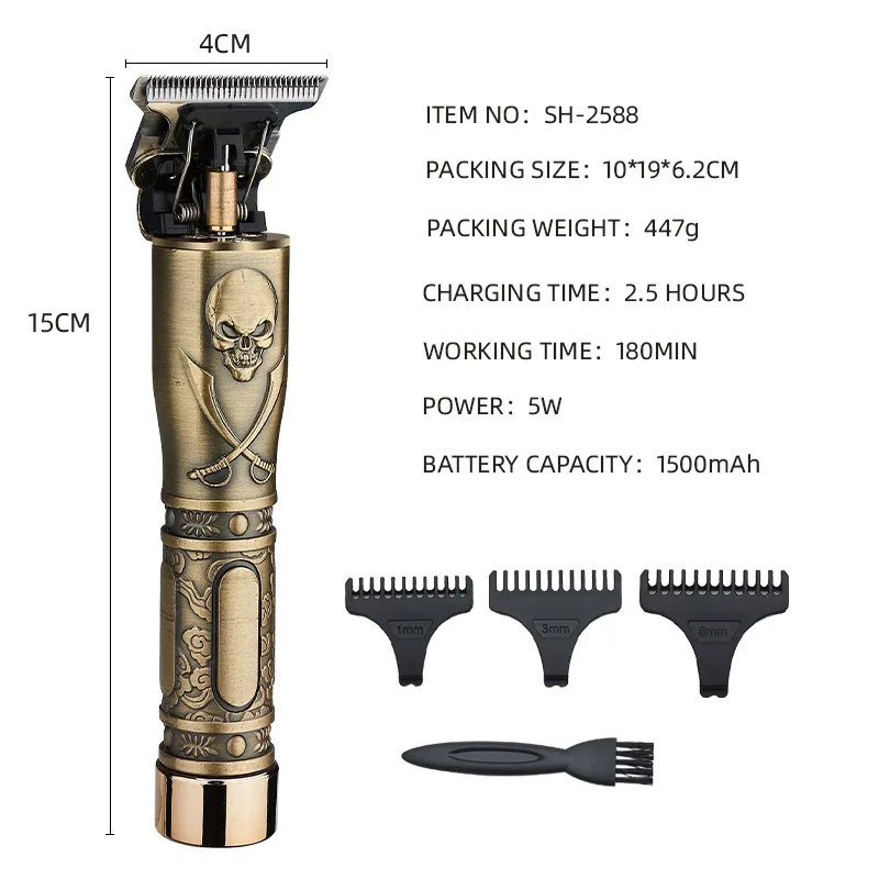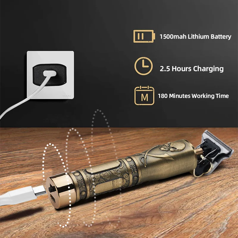 Триммер для стрижки волос беспроводной с Т-образными лезвиями, 0 мм...