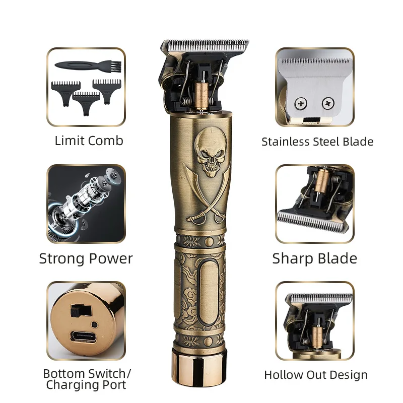 Машинка для стрижки волос Мужская, 0 мм, винтажная, золотистая