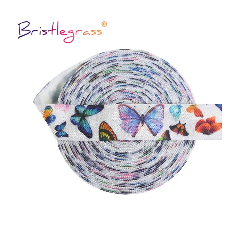BRISTLEGRASS 2 5 10 ярдов 58 "15 мм с принтом в виде бабочек с отворотом резинки враг спандекс атласная лента накладные волосы блондики, галстук-бабочка, платье DIY Швейные отделка