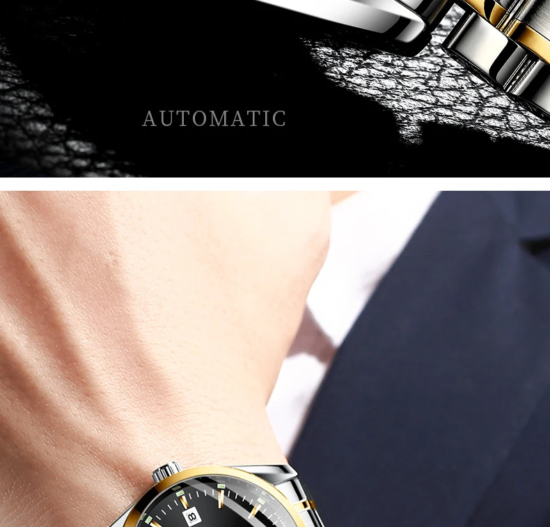 Часы мужские механические, водонепроницаемые, с ремешком из нержаве...