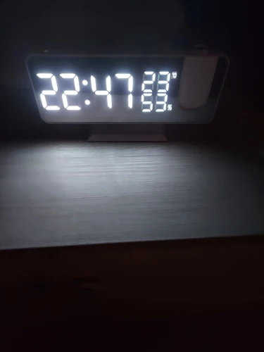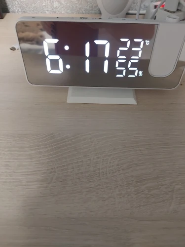 Пришёл быстро. Батарейка в наличии, все работает. Компактные. На потолке красным цветом отсвечивается время. Мне понравились.