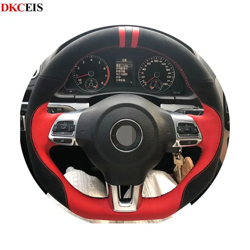 DIY черный замшевый кожаный чехол рулевого колеса автомобиля для VW...
