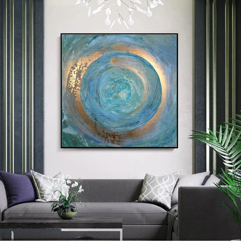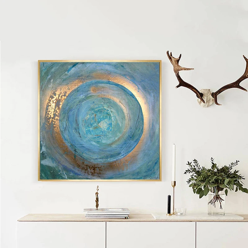 Абстрактная синяя Золотая Картина на холсте Современные плакаты и принты Куадрос настенные картины для гостиной домашний Декор без рамки