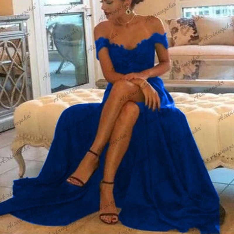 Aixiangsha пыльное синее Фея вечерние платья с открытыми плечами ко...