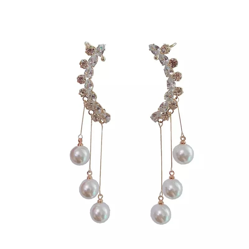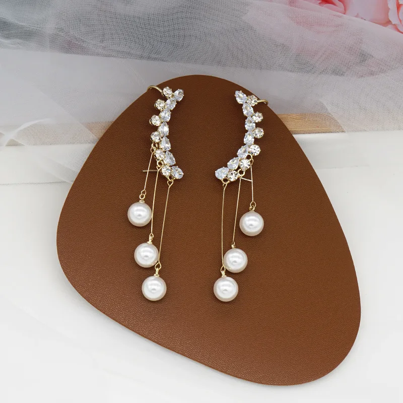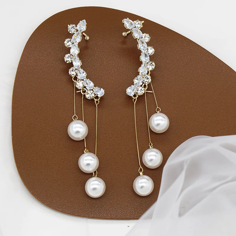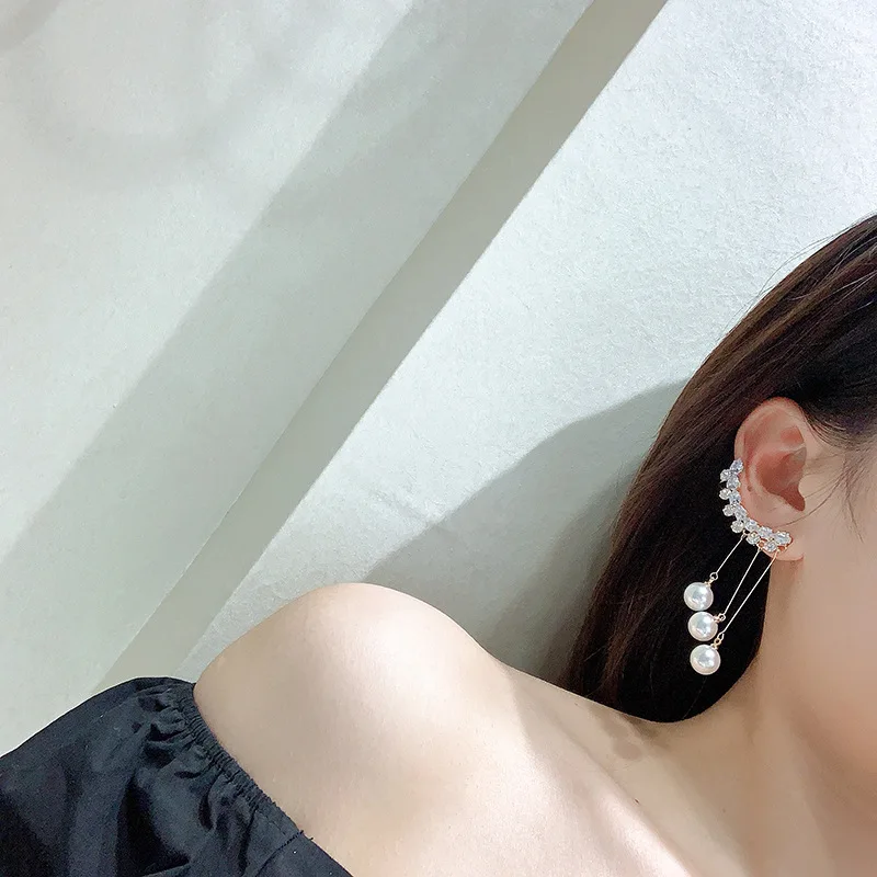 Серьги-каффы женские с жемчугом, эффектные, корейские, Сияющий циркон