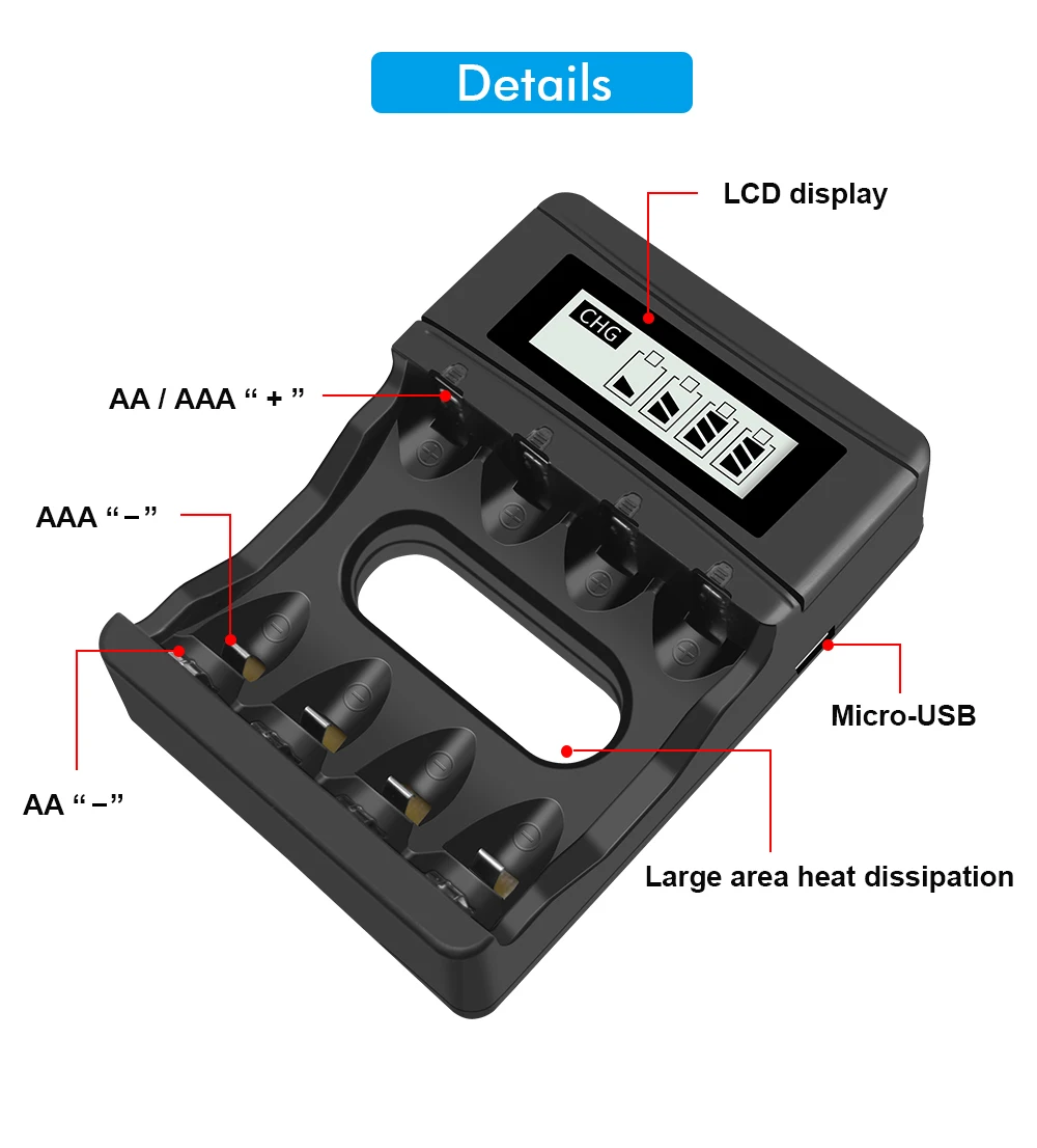 Аккумуляторы и зарядное устройство хорошего качества , 1.5 В . Информативный дисплей и качественный материал .Покупаю в этом магазине не первый раз. Хороший сервис и быстрое общение. Брал раньше синего цвета у них при зарядке горел светодиод, у чёрных другое зарядное устройство на дисплее которого всё видно. Отдельное спасибо за дополнительные аккумуляторы в замен вышедшему из строя. Спасибо. Рекомендую.