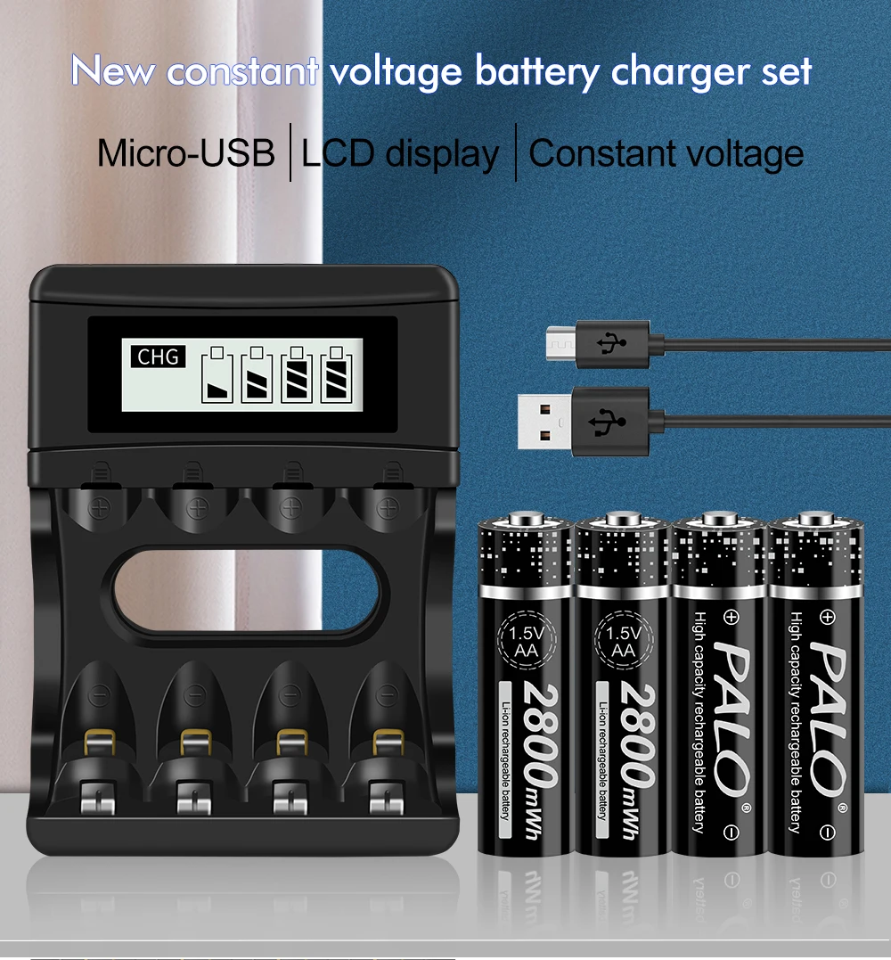 1,5 в AA перезаряжаемая батарея AA 1,5 в перезаряжаемые литий-ионные батареи МВтч + зарядное устройство с 4 слотами для батарей aa aaa