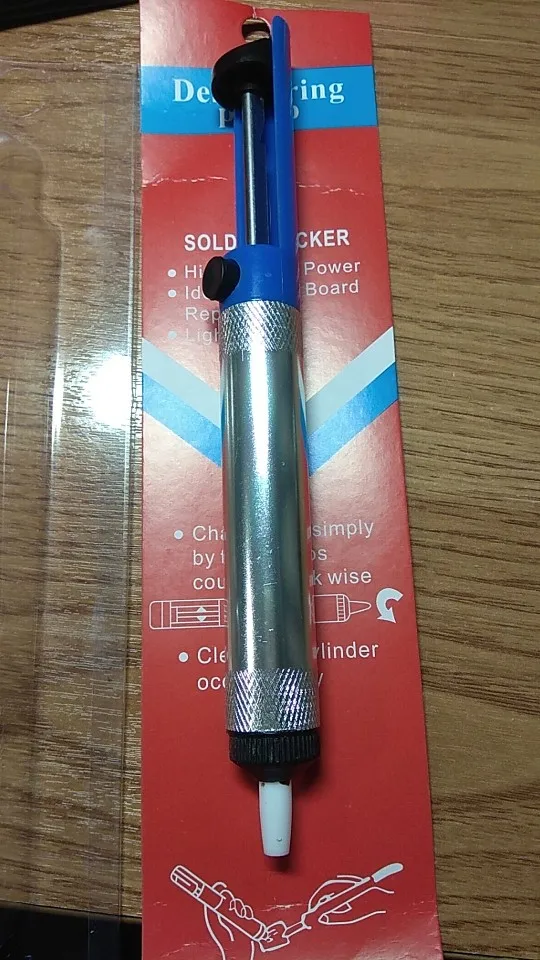 Навыки использования: для обеспечения хорошего уплотнения поршня припоя. Перед электричеством, пальцами для вставки отверстия припоя головка припоя для нажатия кнопки, если поршень не легко вставить на место, что уплотнение хорошее. Головки оловянных присосок диафрагмы отличаются размерами, выбирают соответствующие спецификации. Головка оловянной присоски, следует заменить новую. Паяльная паста окунается в немного канифоли перед контактом с припоем для улучшения текучести припоя. Контактные подушечки головки немного длиннее, при расплавлении припоя штифт припоя в качестве центра, затем Раздайте по часовой стрелке, чтобы нарисовать круг, а затем нажмите кнопку оловянного присоска. Материал: наполовину алюминий наполовину пластик Диапазон регулирования температуры: 1 ℃ Область применения: удаление олова Длина: прибл. 200 мм Максимальное всасывание: 30 Цвет: синий Посылка: 1 шт. x насос для распайки