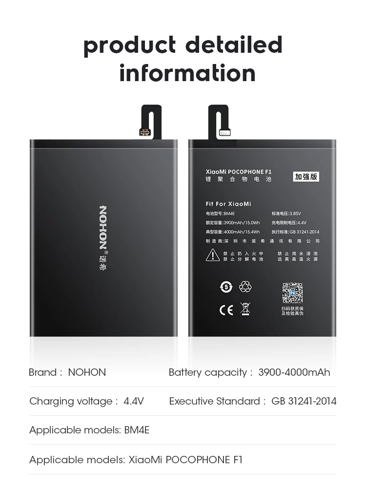 Аккумулятор NOHON BM4E BP41 BM47 BM46 BN43 BN41 BN31 BM36 BM39 BM22 BM3E BM3L BM45 BM49 BM50 BM3F BM3B для Xiaomi Mi POCOPHONE F1