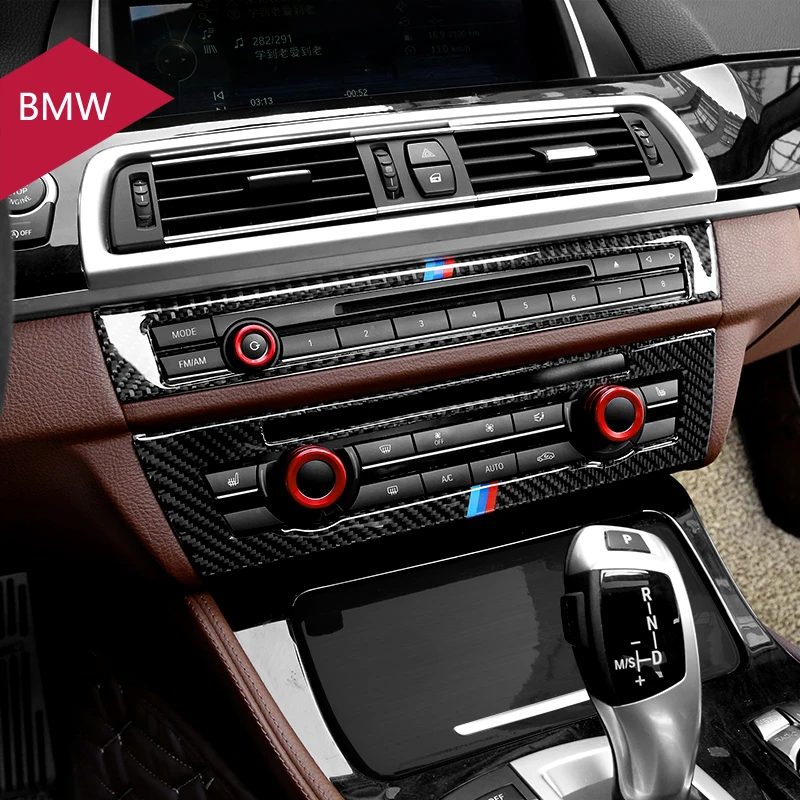 Углеродное волокноЦентральная консоль переключения передач Панель украшения Накладка дляBMW 5 серия F10 F182011-Наклейки на дверь автомобиля подлокотник рамка