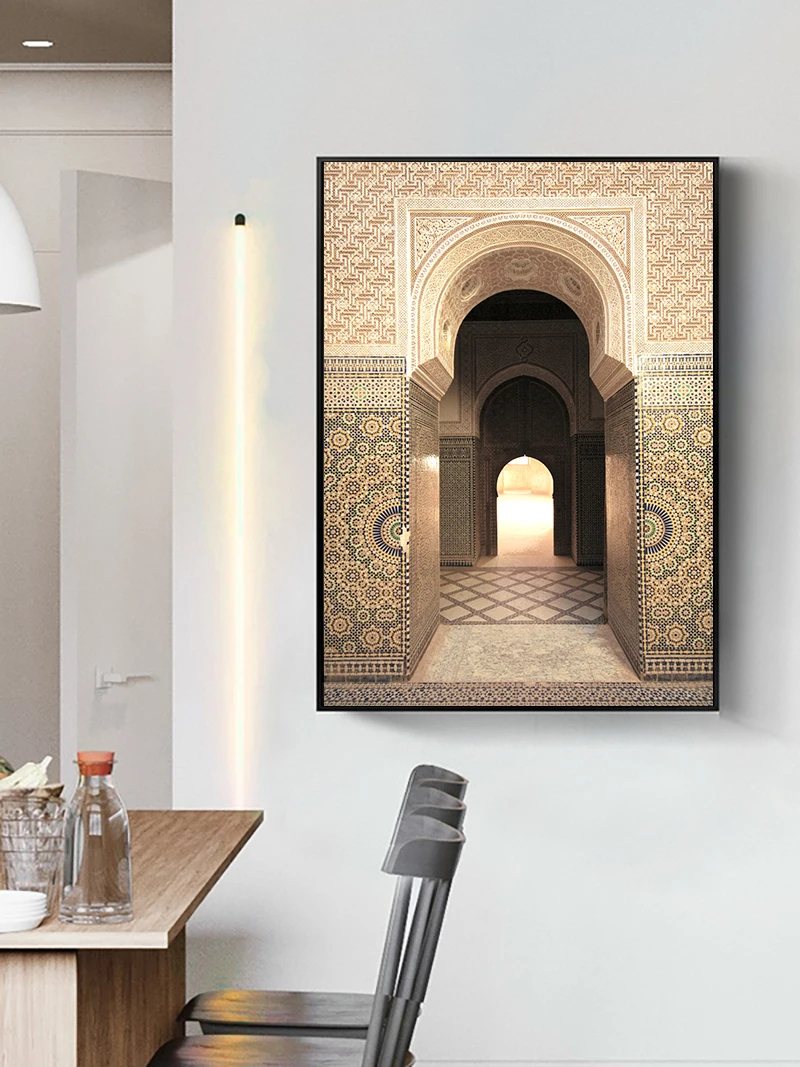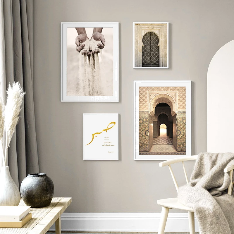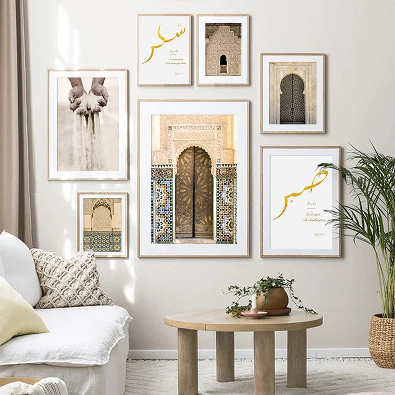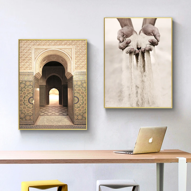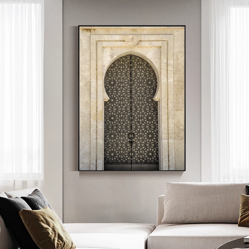 Винтажный постер исламских ворот, мечеть, архитектура, дверь, холст, живопись, мусульманские цитаты, настенная печать, Современное украшение для дома, картина