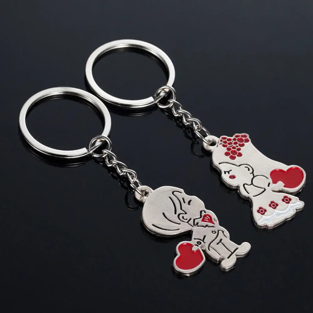 Парные кольца для ключей для влюбленных, металлические брелоки с сердцем жениха и невесты, подарки, украшение для стайлинга автомобиля, 1 пара брелоков