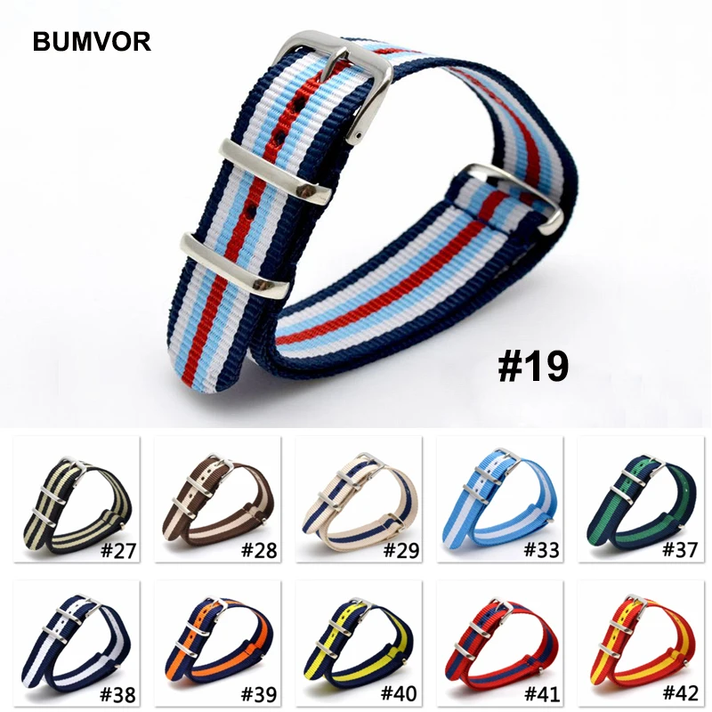 Нейлоновый ремешок BUMVOR для наручных часов, плетеный браслет из НАТО, нейлоновый браслет с пряжкой, 16 мм 18 мм 20 мм 22 мм 24 мм