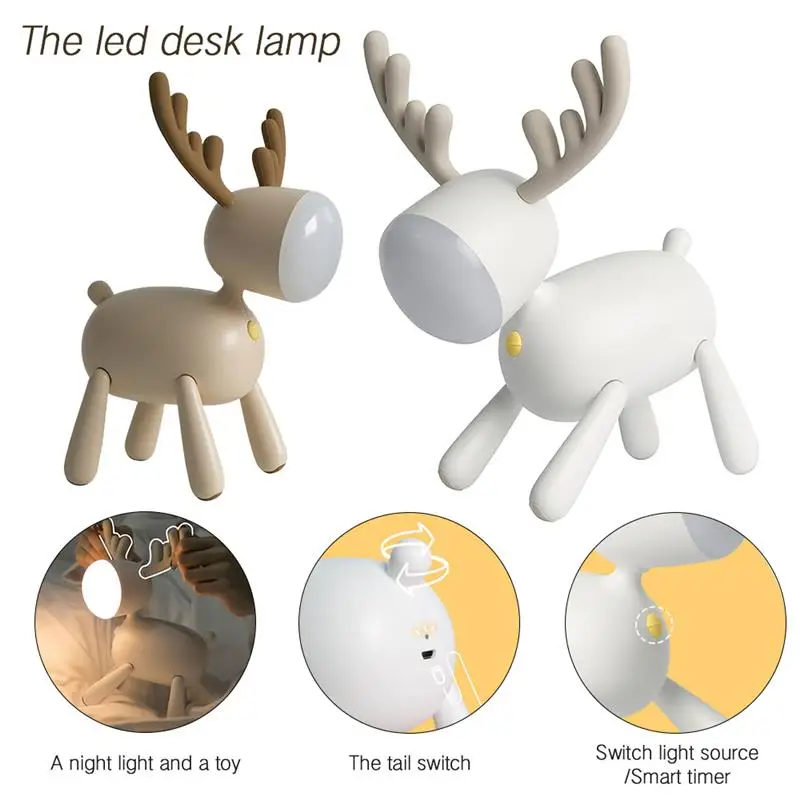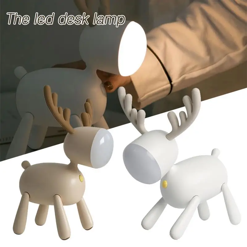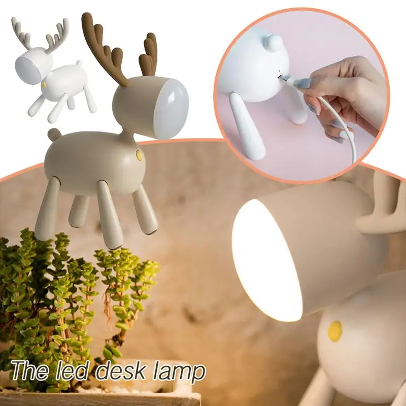 Светодиодный ночсветильник с милым оленем, ночник в виде животного для детской комнаты, рождественский подарок для детей, настольное украшение, вращающийся ночсветильник с USB светильник настольный лампа настольная