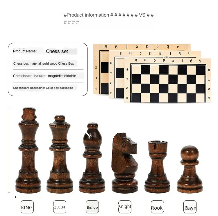 Chess Set M SizeChessboard 34cm*34cm*2.5cm , King high 6.6cm / diameter 2.1cm