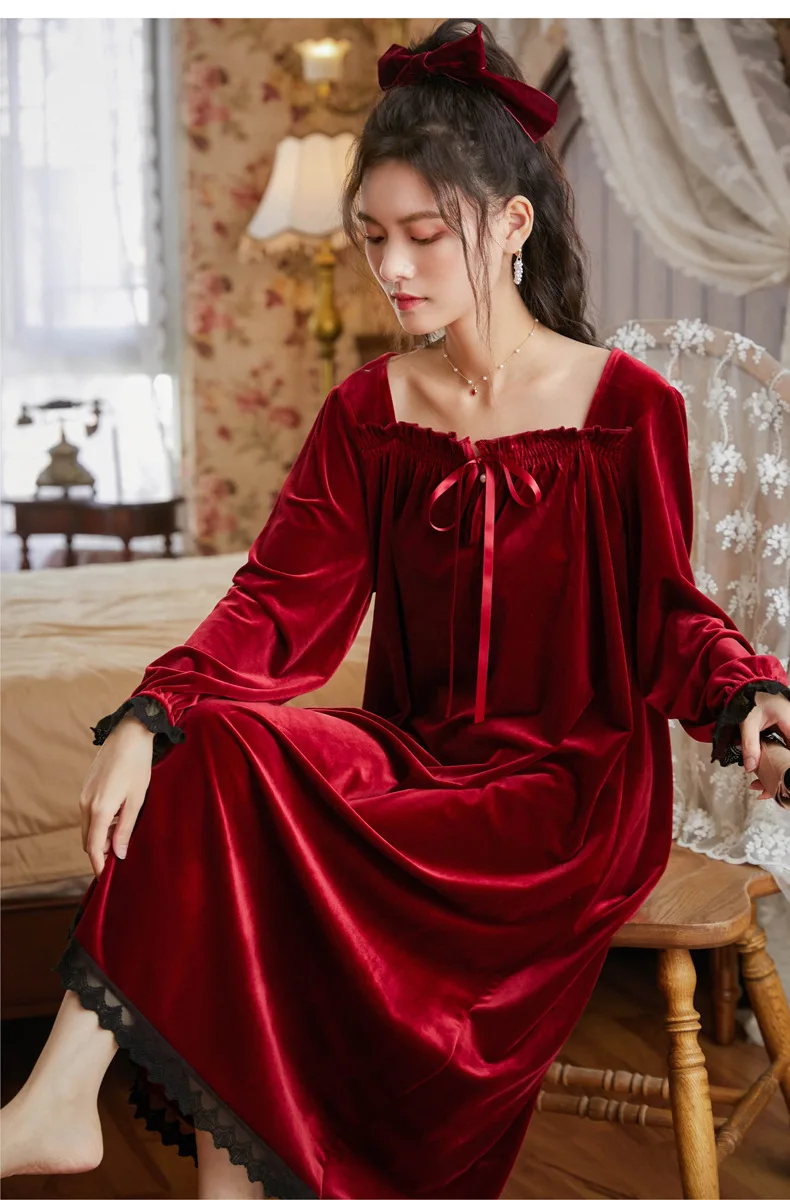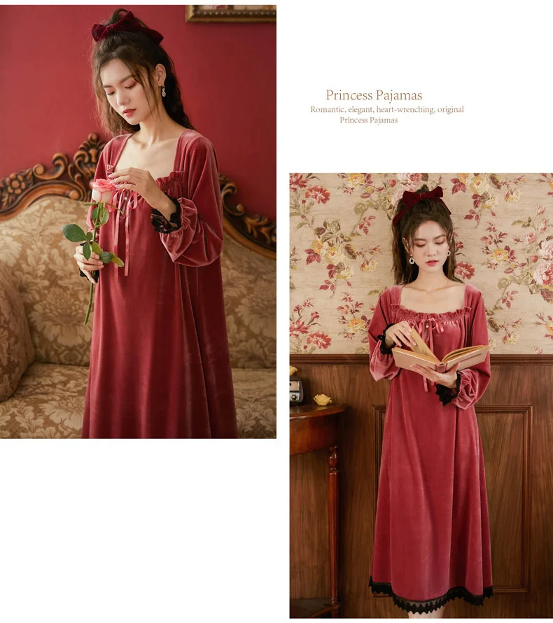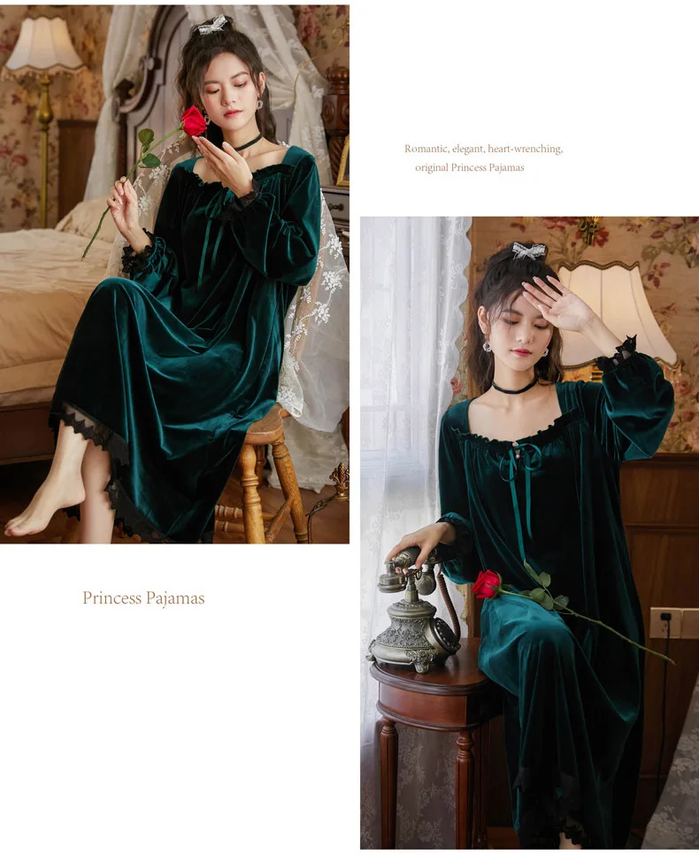 Зеленая бархатная ночная рубашка, ночная рубашка принцессы, женская одежда для сна, длинные женские платья 2021, зимняя одежда, женская одежда Phoentin FG262