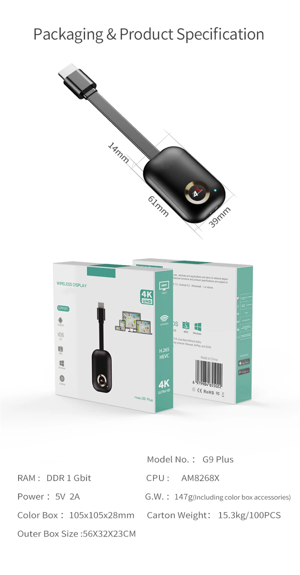 Беспроводная ТВ-приставка G9 Plus, 1080P, 4K, HDMI, 2,4 ГГц5G, для DLNA, AirPlay, Mirascreen, дисплей, зеркало, приемник, ТВ-ключ