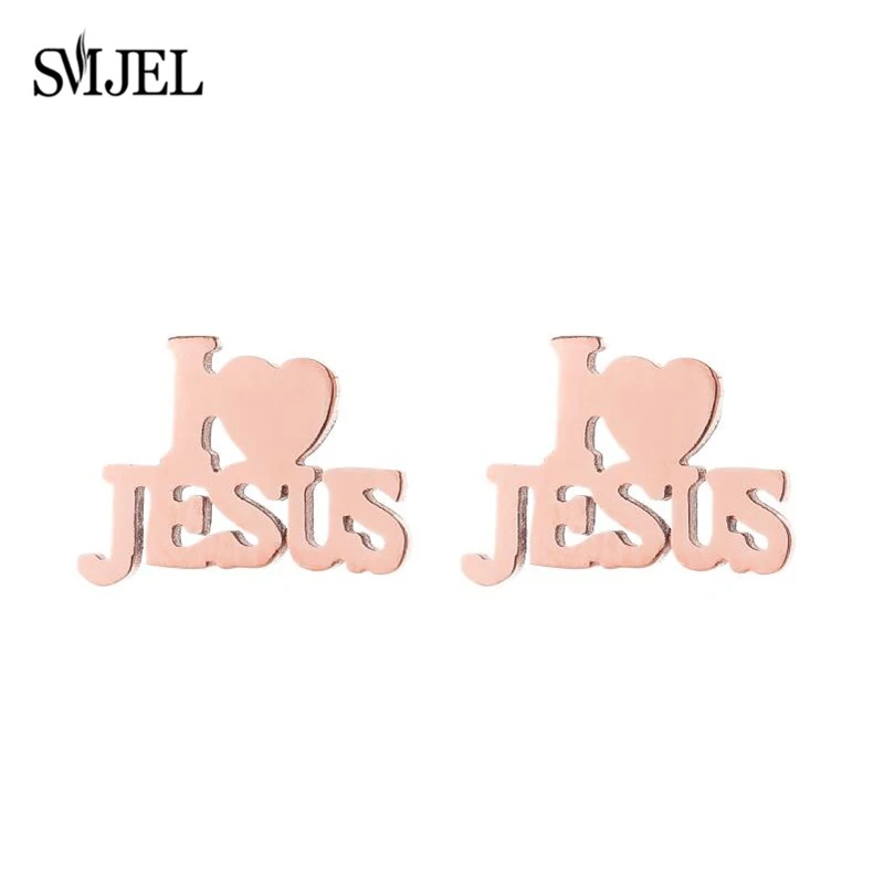 Серьги-гвоздики SMJEL в стиле хип-хоп, рок, Иисус, черные маленькие серьги из нержавеющей стали, женские и мужские серьги для пирсинга, ювелирные изделия, подарки