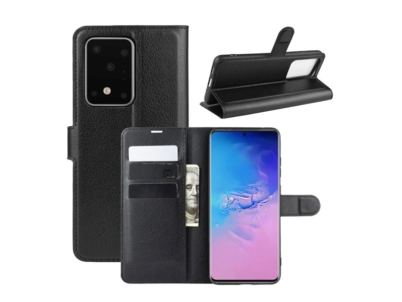 Чехол книжка черного цвета на Самсунг Галакси С20 Ультра с отсеками для карт, визиток и оснащен удобной подставкойСерия футляр чехлов Wallet (коллекция защитный чехлов-книжка изготовленных из высококачественной искусственной кожи Carcasa Capa)Основание чехла из силикона черного цвета с идеально точными техническими вырезами кнопок и портов.Чехол книжка для мобильного телефона Samsung Galaxy S20 Ultra